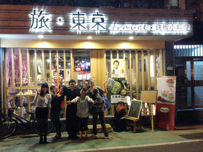台北市内の鉄板焼き屋日本人オーナーに焼き方を教わりながら