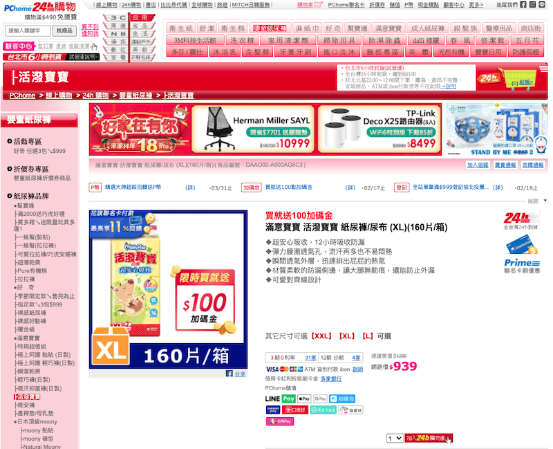 PChome24購物の使い方、「紙おむつ」を買う方法でご紹介しまーす!